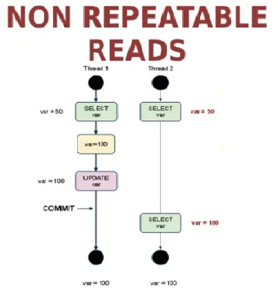 'Non-Repeatable Read'는 한 트랜잭션 내에서 같은 데이터를 두 번 조회했을 때, 첫 번째 조회와 두 번째 조회의 결과가 다르게 나타나는 현상입니다. 예를 들어, 트랜잭션 A가 데이터 X를 조회한 후 다른 트랜잭션 B가 데이터 X를 수정하고 커밋을 완료한다면, A가 다시 데이터 X를 조회했을 때 수정된 데이터를 보게 됩니다. 이는 트랜잭션 도중 데이터의 일관성이 유지되지 않음을 의미합니다.